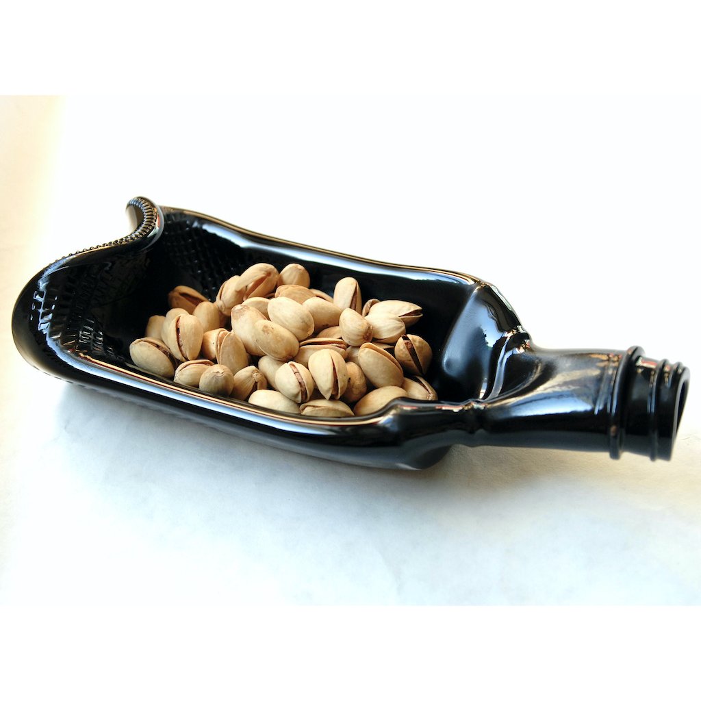 Upcyklovaná miska na různé delikatesy, nebo na svíčky či jiné drobnosti je vyrobena z krásné láhve od britského ginu. Svůj tvar získala díky svému pobytu v peci, kde se teplota vyšplhala až na 800 stupňů Celsia.