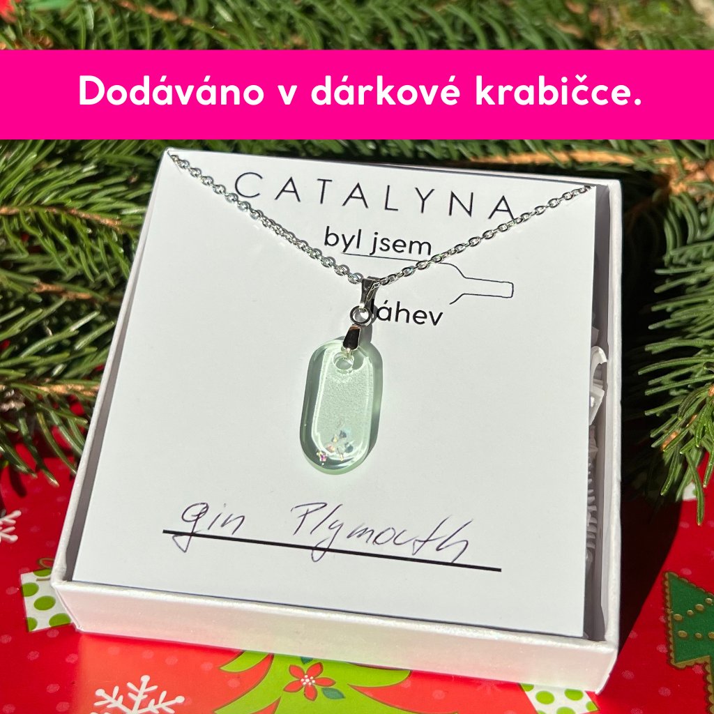 Náhrdelník Constantina z láhve ginu Plymouth se třpytkami