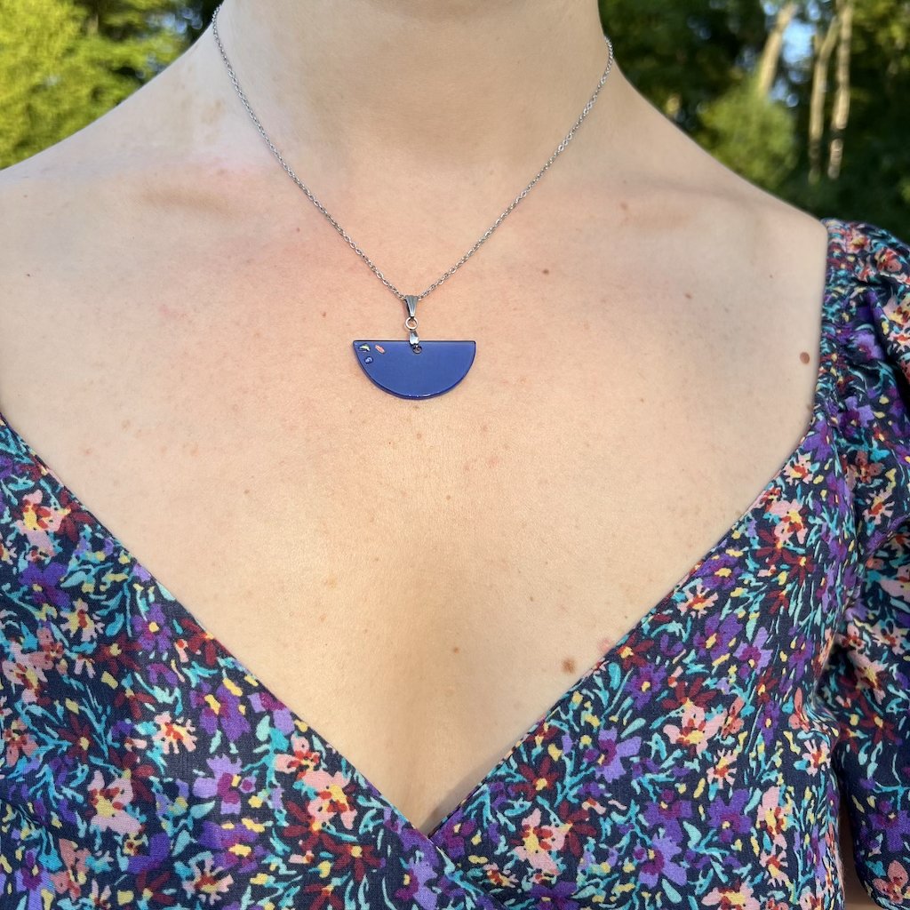 Recyklovaný náhrdelník jsem vyřezala a obrousila ve své dílně v Praze.