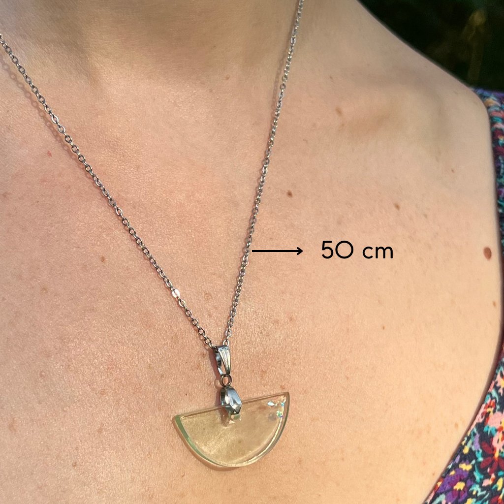 Tvar lodičky je zavěšen na řetízku z chirurgické oceli 50 cm dlouhém.