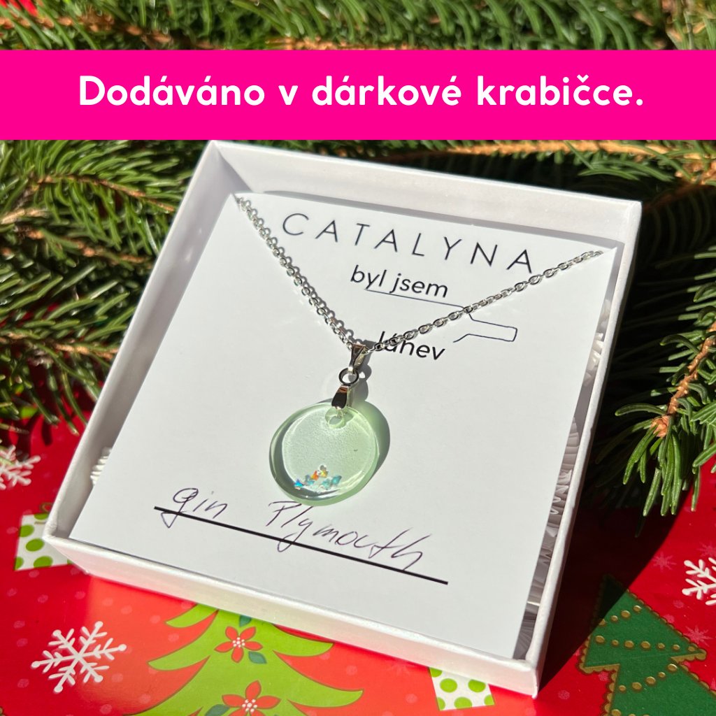 Náhrdelník Eufrozina z láhve ginu Plymouth se třpytkami