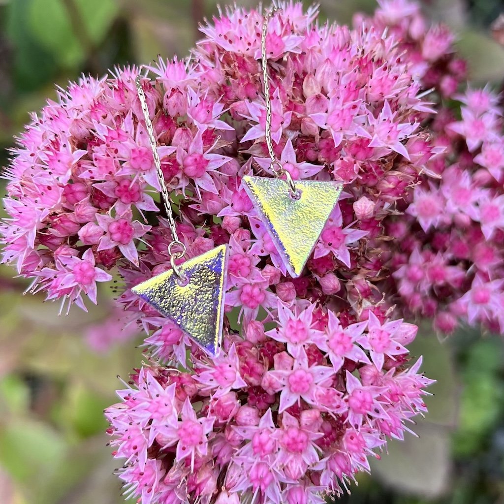 Tvar trojúhelníčku je zavěšen na řetízku z chirurgické oceli.
