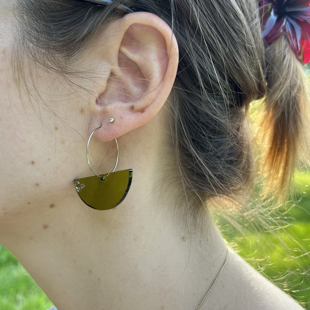 Náušnice Eudokia z láhve od vína se třpytkami na kroužku ručně vyráběný šperk v ČR