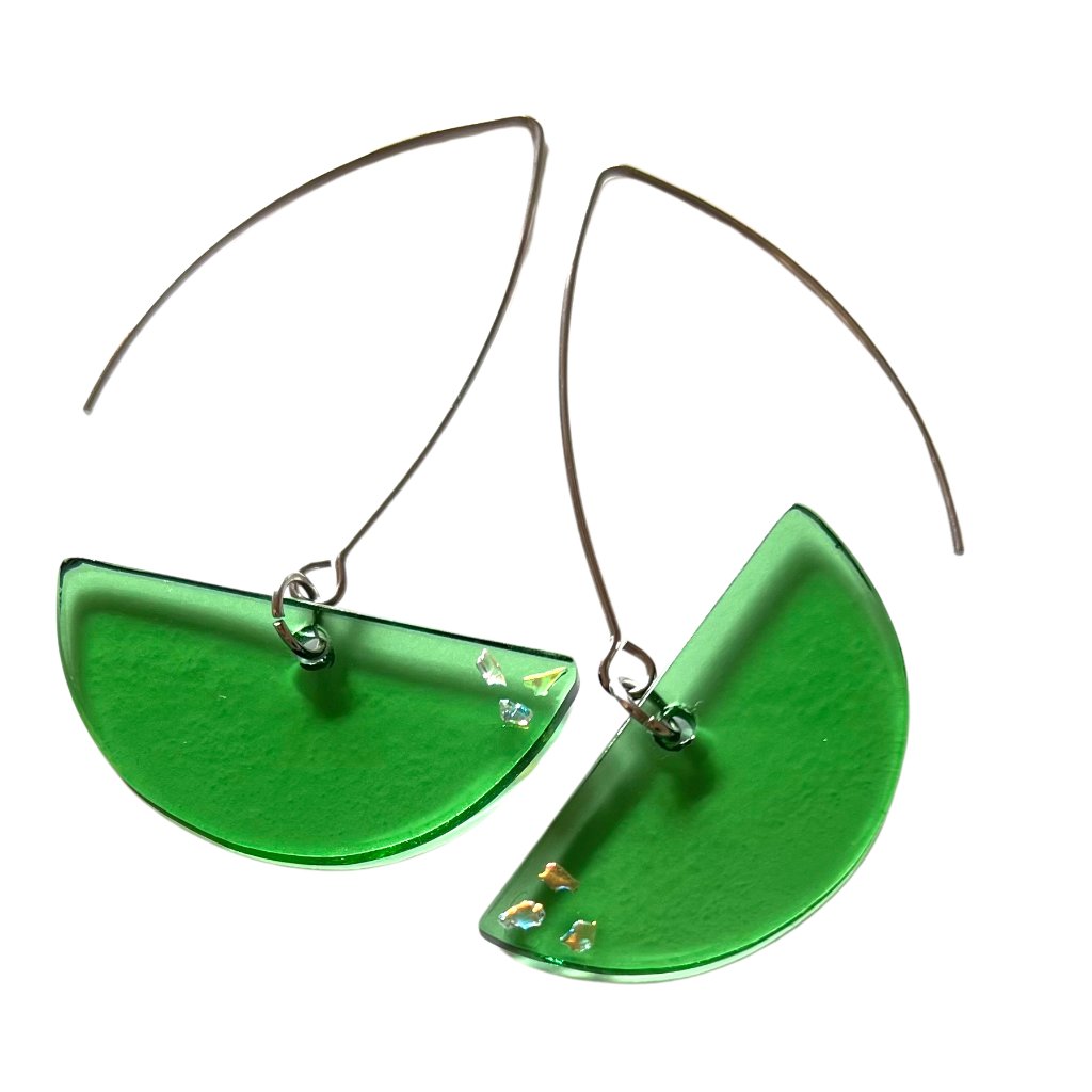 Náušnice Eudokia z láhve od vína zelené barvy se třpytkami