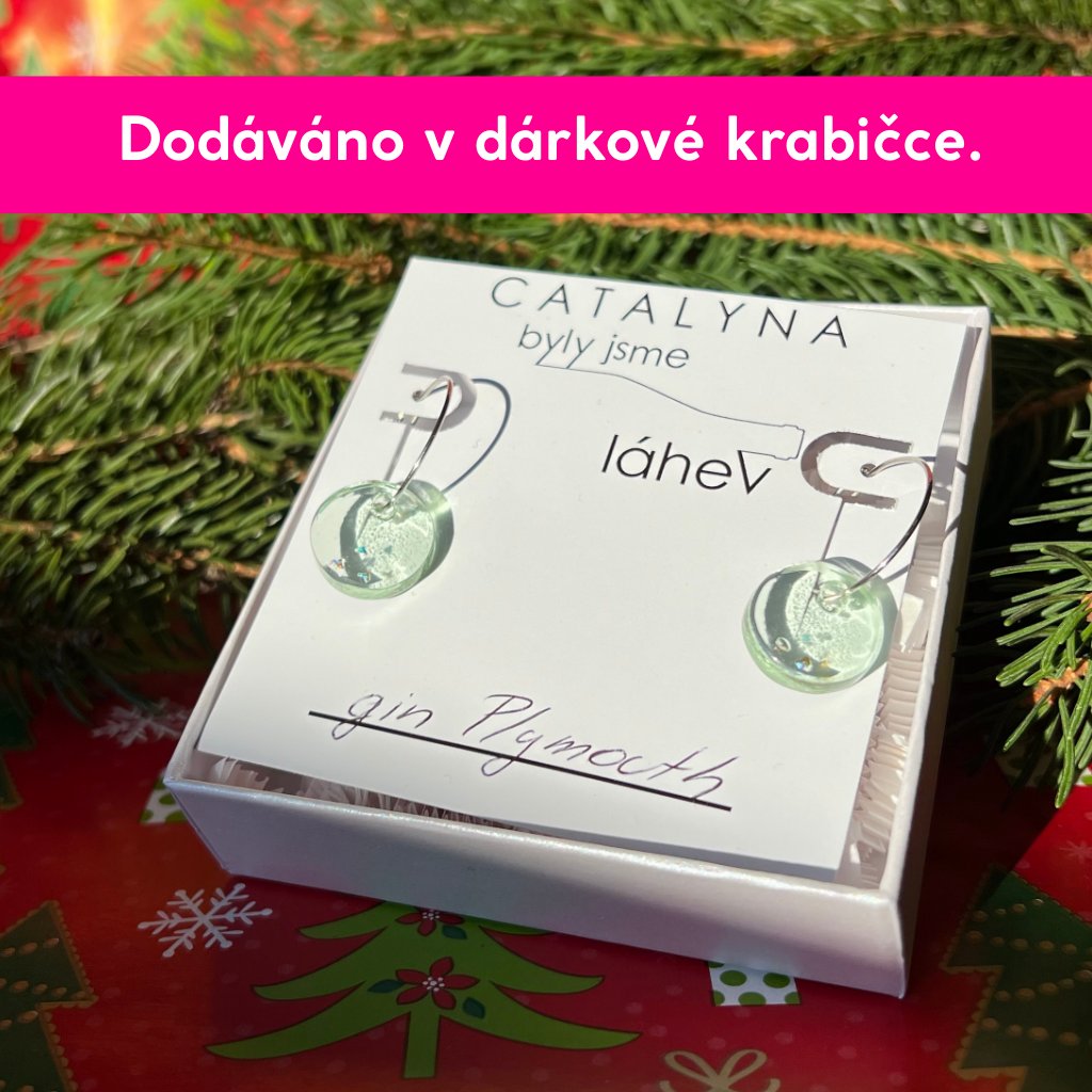 Náušnice Eufrozina mini z láhve ginu Plymouth se třpytkami