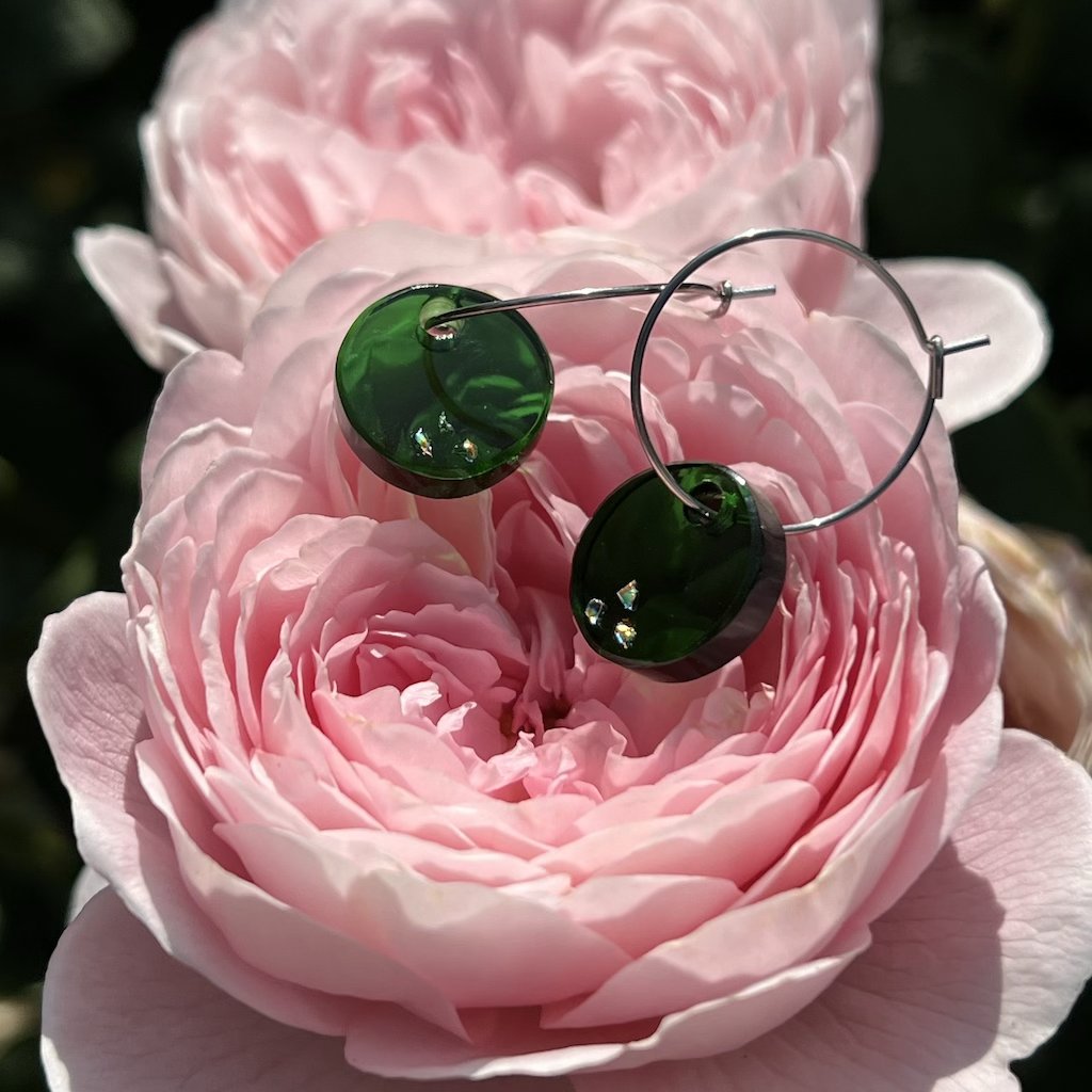 Tvar kolečka je zavěšen na kroužku z chirurgické oceli. Tento typ zapínaní je super praktický, zvláště v zimním počasí, kdy nosíme šály, jelikož vám drží krásně na svém místě a nehrozí ztracení náušnice.