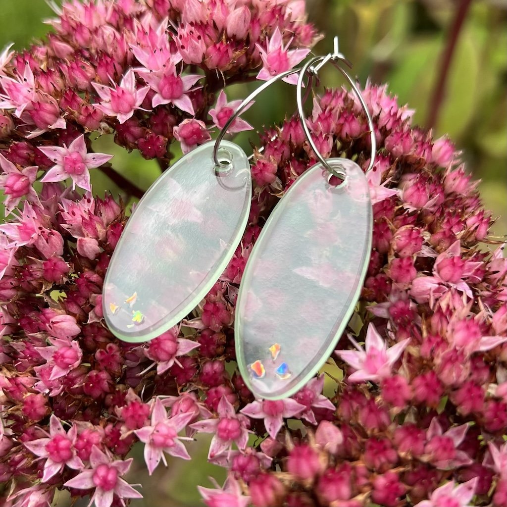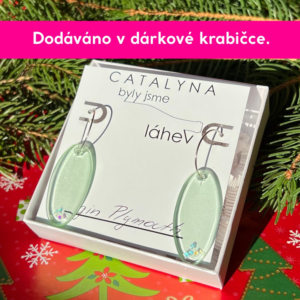 Náušnice Pulcheria z láhve ginu Plymouth se třpytkami na kroužku