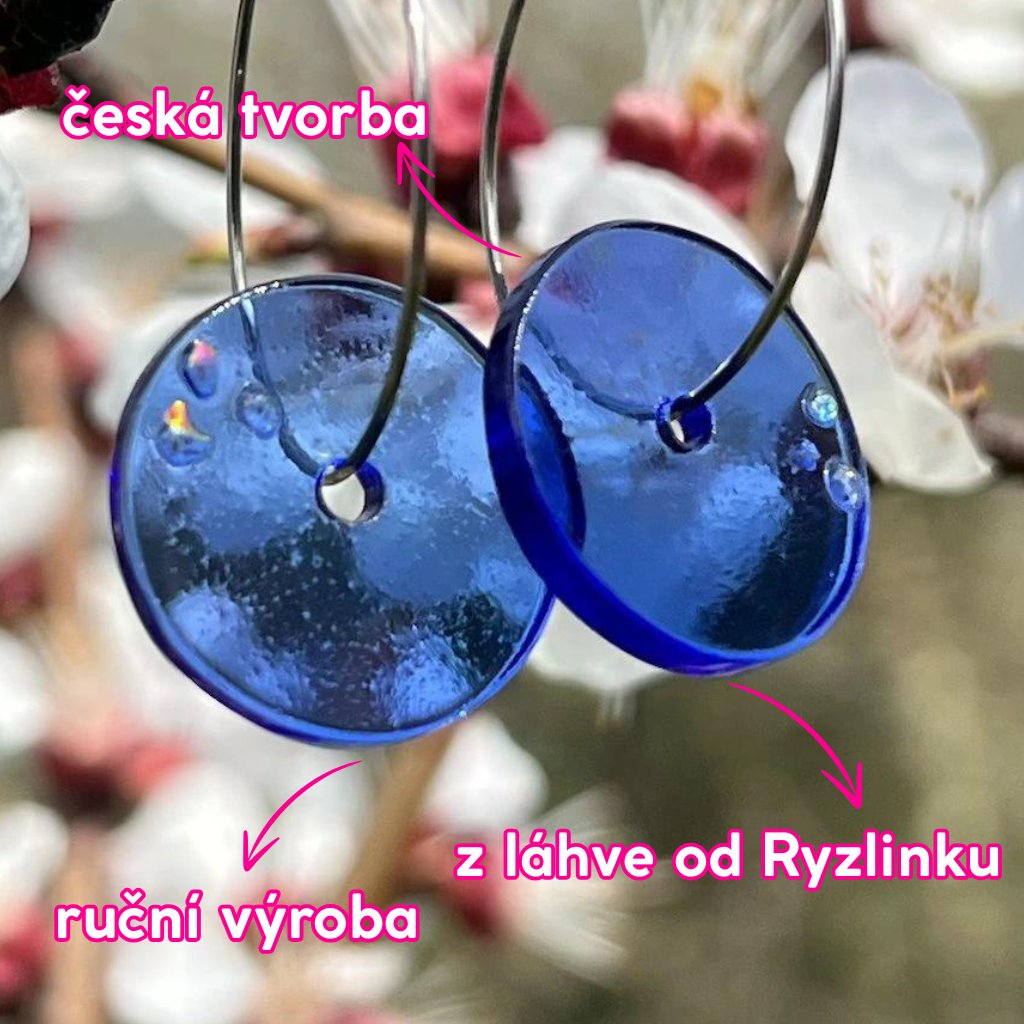 Zajímavé náušnice jsou vyrobené z láhve od polosladkého víno z Německa a ozdobeny jsou dichroickým sklem, které hází krásné odlesky.