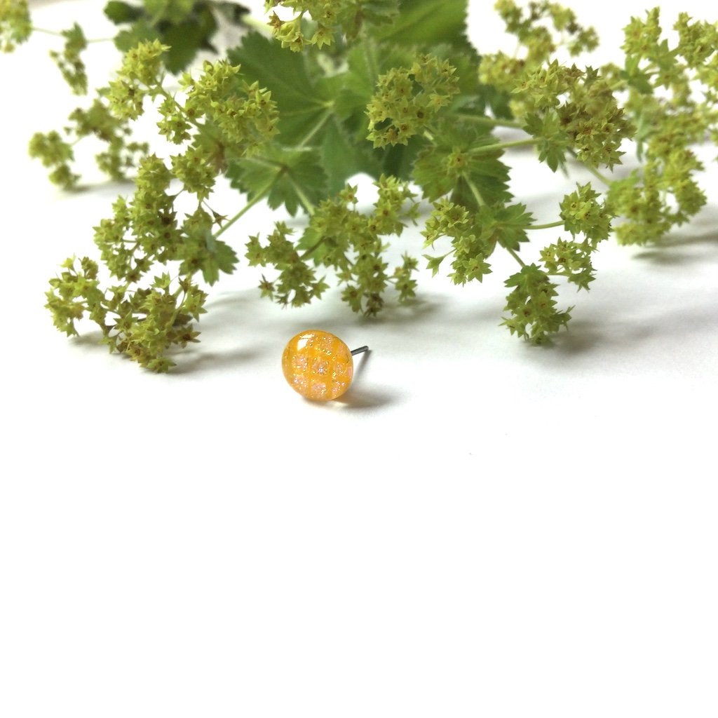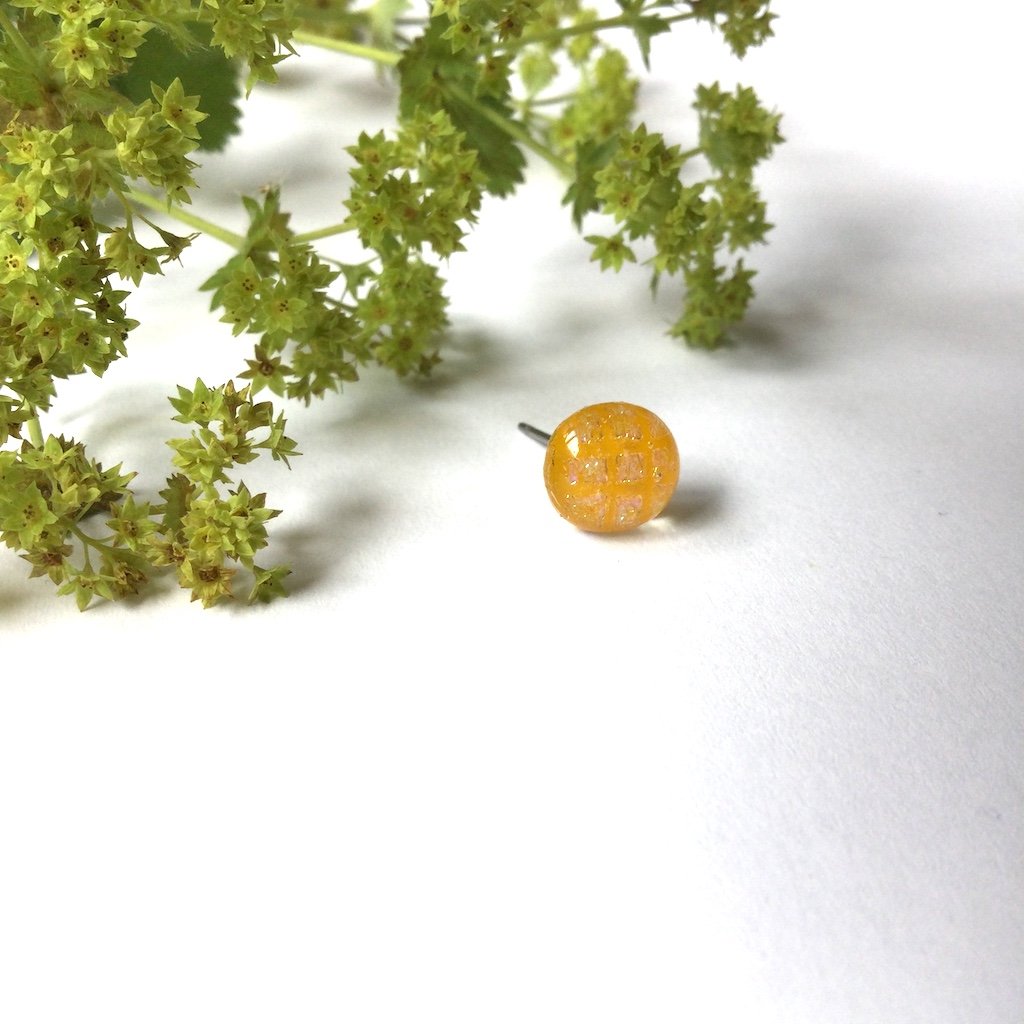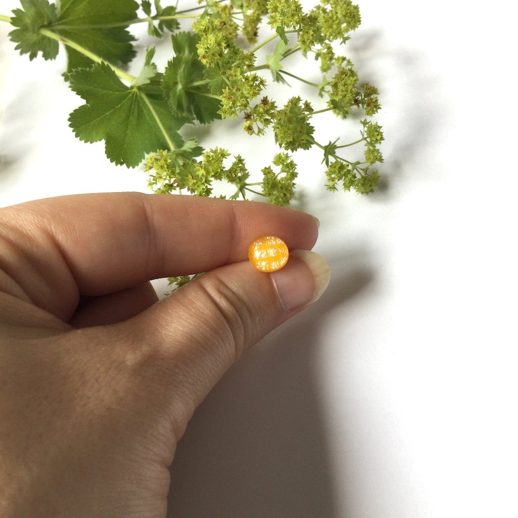 Pecka je vyrobena z dichroického skla žluté barvy barvy s blyštivými čtverečky.