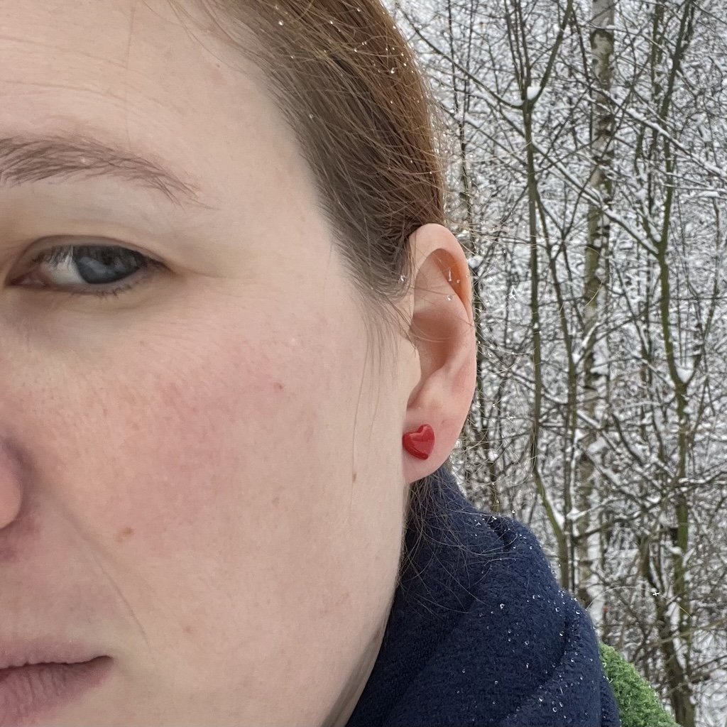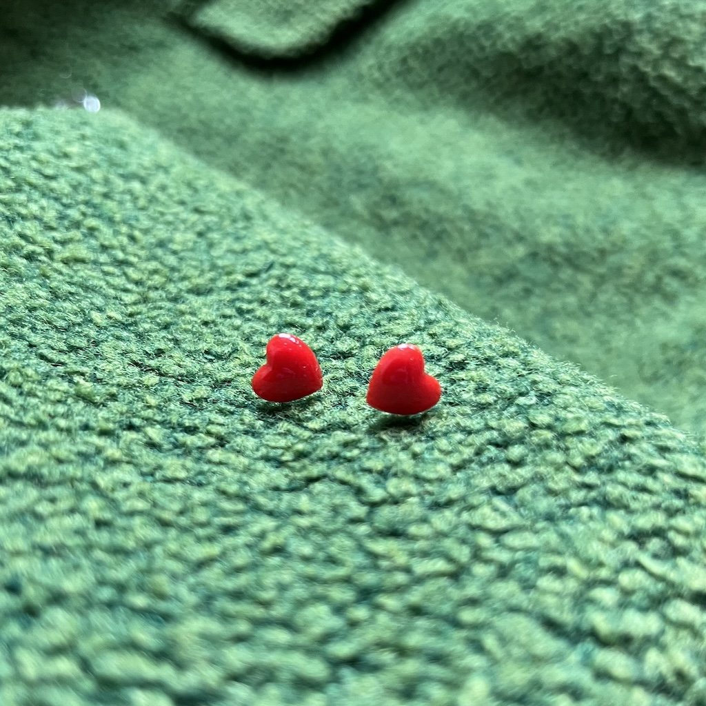 Tyto ručně vyráběné skleněné mini náušnice ve tvaru srdce vznikají z rozdrceného skla, jemného skleněného prachu, který se znovu rodí v peci. Každý pár je malým důkazem toho, že i z fragmentů může vzniknout něco krásného.